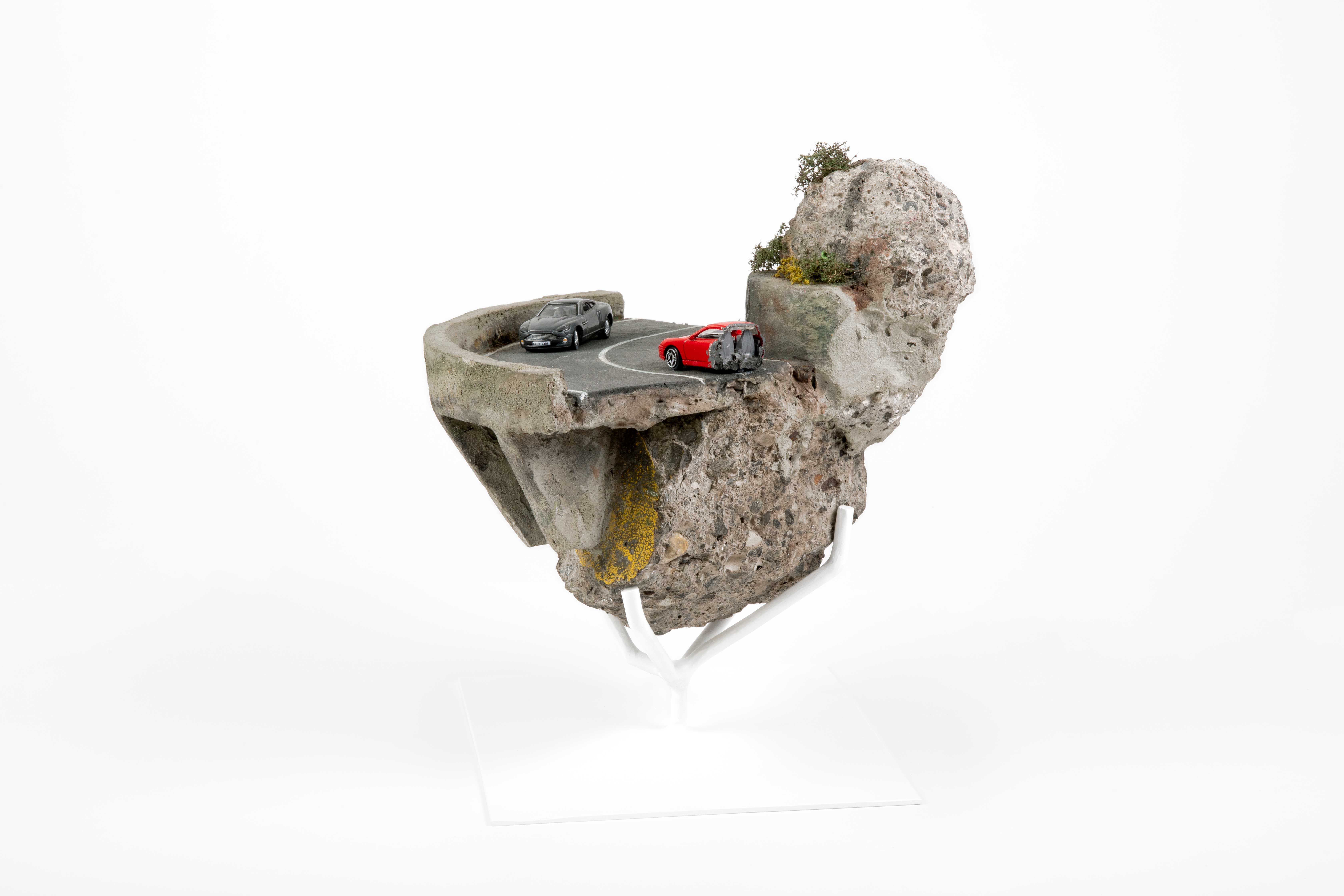 Los fragmentos de un impacto aparecen como suspendidos en el aire, gravitando dentro de vitrinas, atestiguando un reventón del que se dispararon trozos de tierra. Cápsulas que contienen un trabajo de orfebrería, joyas confeccionadas con la forma de lugares de placer de un grupo selecto. Los fragmentos son piedras y residuos que Norton Maza recolectó tras el impacto, que no es otro sino el Estallido Social de octubre del 2019 en Chile.