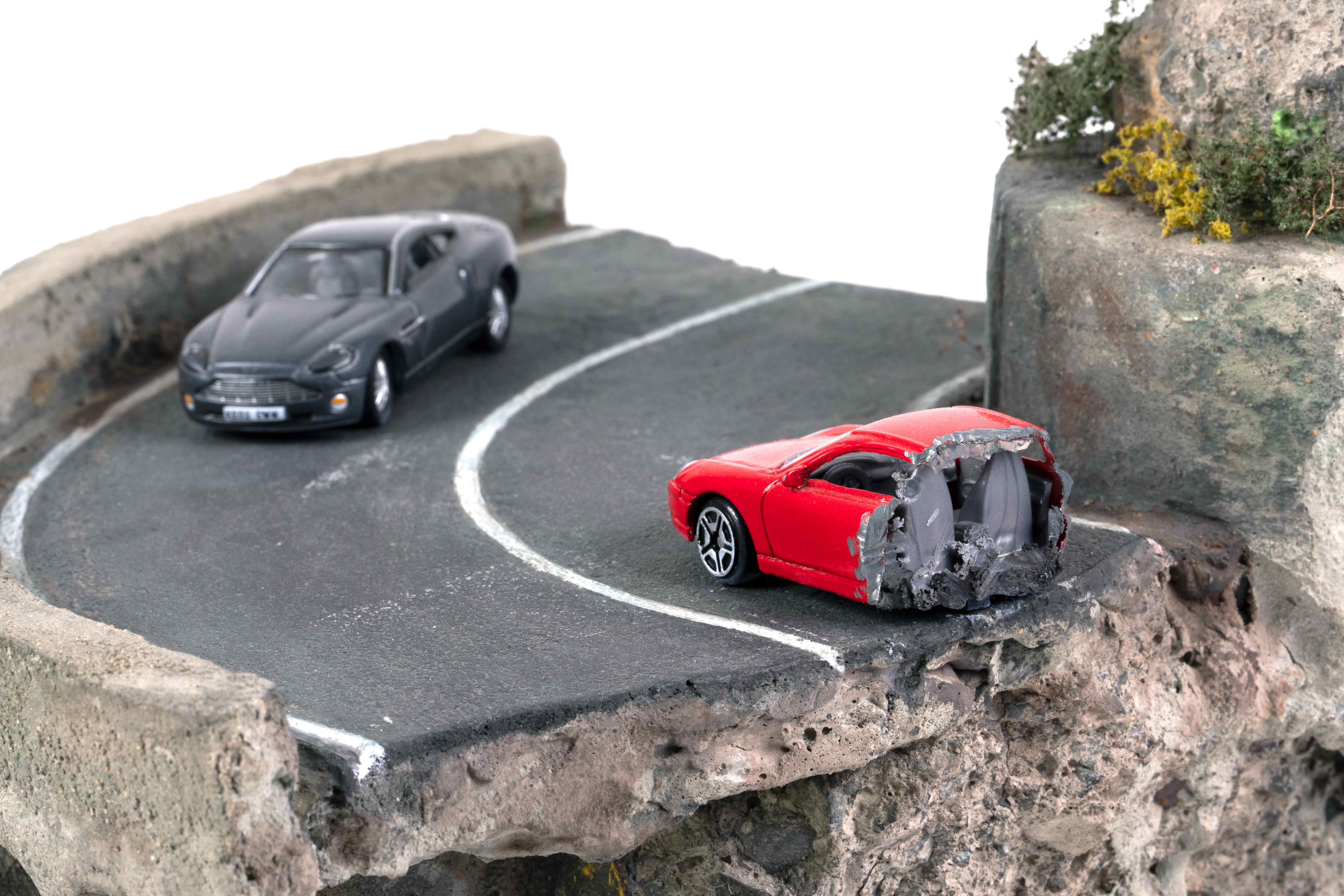 Con esos restos de las manifestaciones, que se usaron como armas arrojadizas contra las autoridades, el artista crea pequeñas escenografías que remiten a la parte más privilegiada de la sociedad. La segunda vivienda, la cancha de golf o la piscina. Micromundos paralelos de los que pocos pueden disponer.